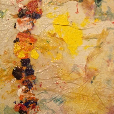 PAPER ON WOODPaper on wood is the same paper towels laminated to 10" squares. I love art that makes itself! |